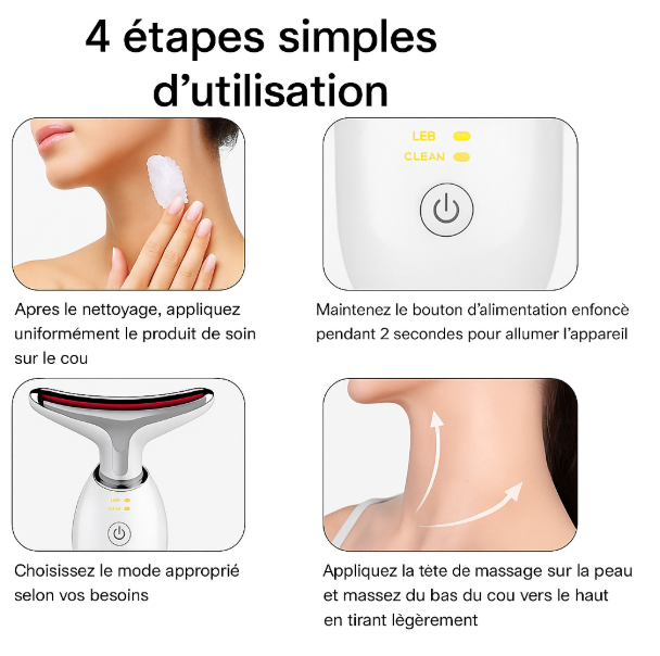 C’est un outil de beauté multifonction conçu pour raffermir, lisser et revitaliser la peau. Grâce à sa combinaison unique de massage, chaleur et thérapie LED, il transforme la routine de soin en une expérience digne d’un institut, directement à la maison.